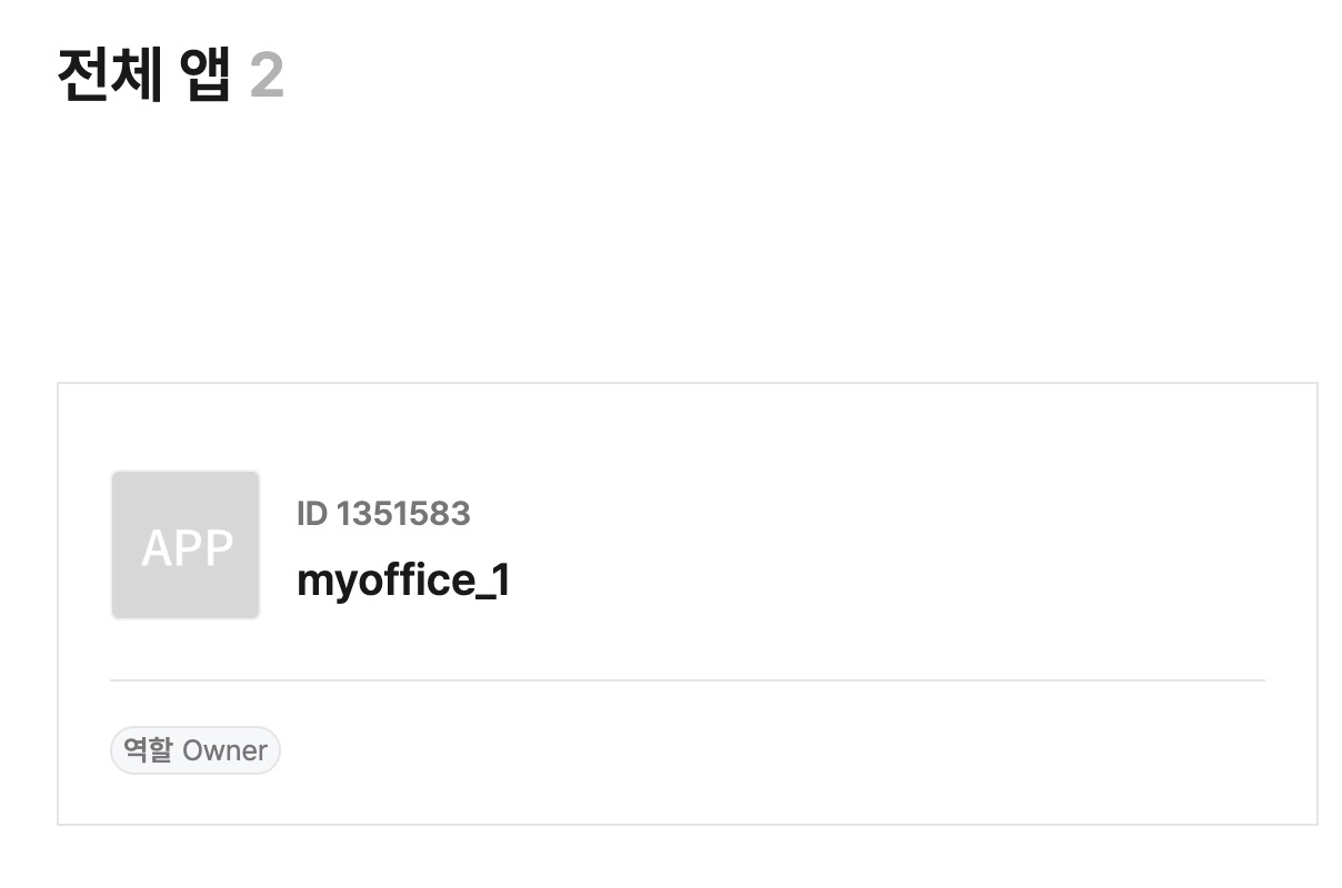 앱을 클릭 합니다.키는 발급되었으나 아직 웹사이트에서 사용할 수 없습니다.